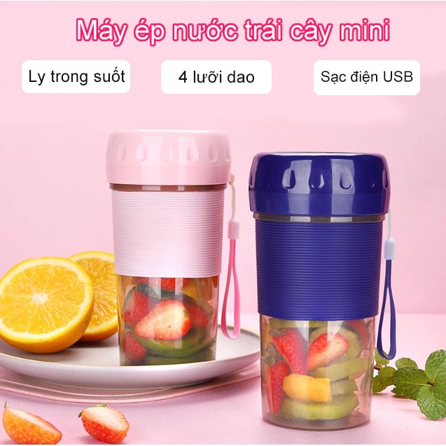 Máy Xay Sinh Tố Mini Cầm Tay Sạc USB, Máy Ép Trái Cây Mini 4 Lưỡi dao hoàn toàn bằng inox 304, Bản Nâng Cấp 300ML