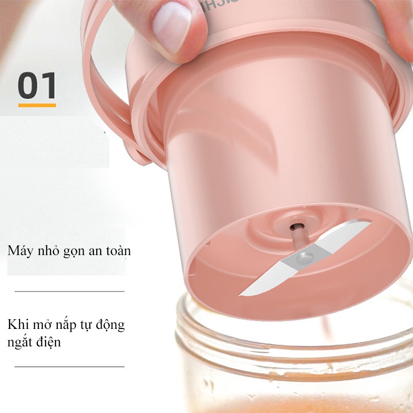 - Máy xay cầm tay sử dụng pin tích điện cáp sạc USB, sạc bất cứ mọi nơi