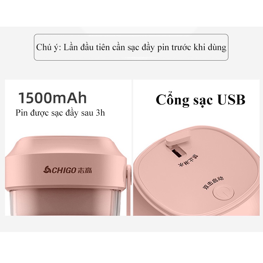 Máy Xay Sinh Tố Mini Cầm Tay Đa Năng ChiGo Dung Tích 350ML Tích Hợp Pin 1500mHA Xay Trái Cây Trong 40S Có Thể Xay Đá Nhỏ
