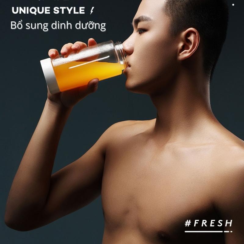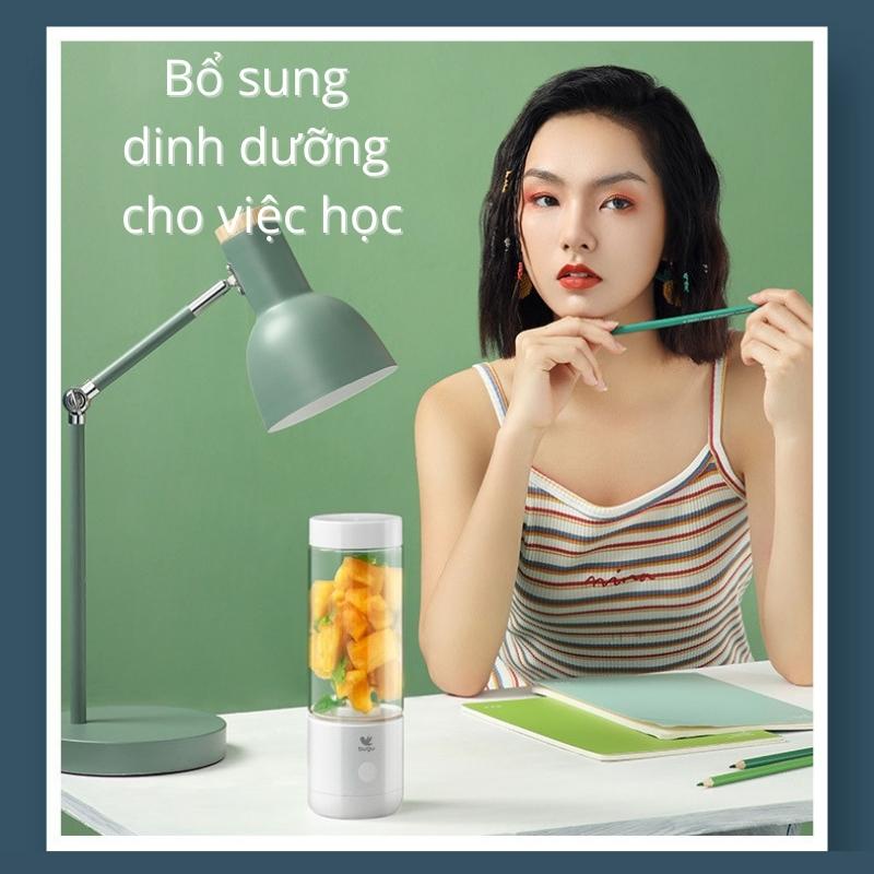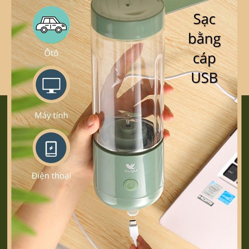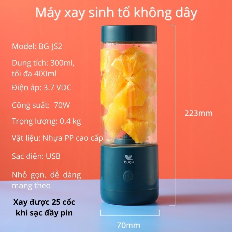 Máy Xay Sinh Tố Mini Cầm Tay 300ml 4 Lưỡi Dao Thép Không Gỉ Có Pin Tích Hợp Sạc USB Bugu BG-JS2