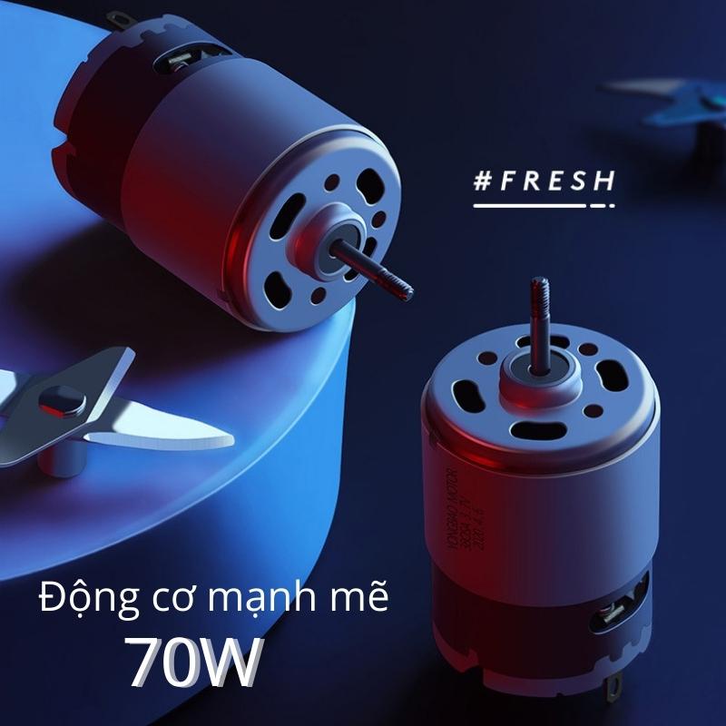 - Lật ngược bình lại (Phần motor nằm dưới): bấm nút để động cơ xay hoạt động.