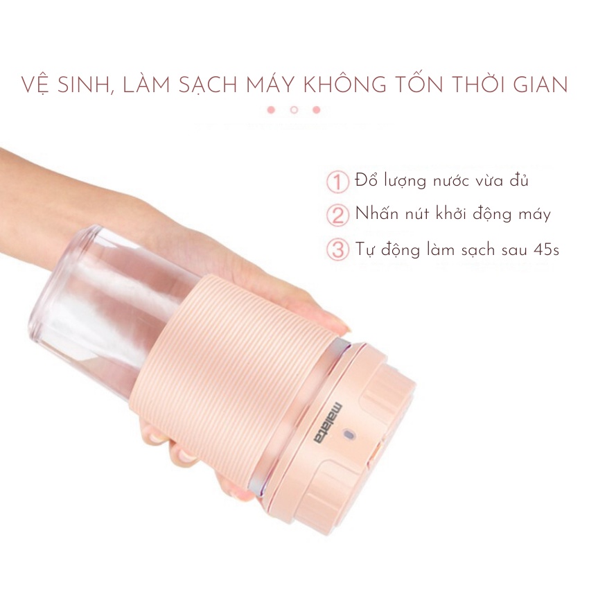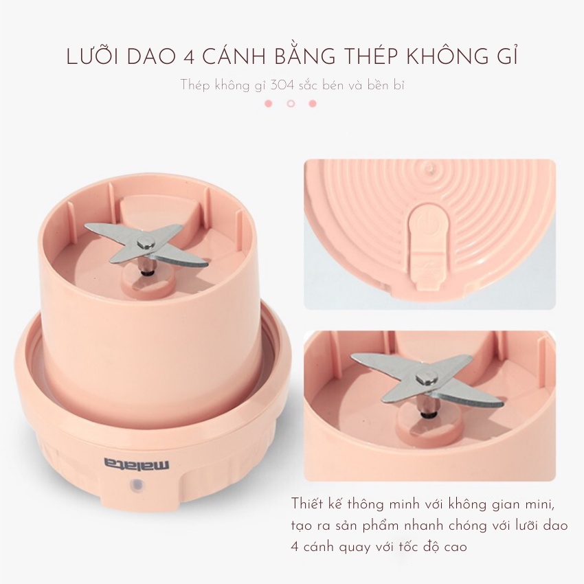 Máy Xay Sinh Tố Mini Cầm Tay Malata 220ML Lưỡi Dao Thép 4 Cánh Không Gỉ, Đa Năng Tiện Dụng, Có Sạc Pin USB Bảo Hành 12 T