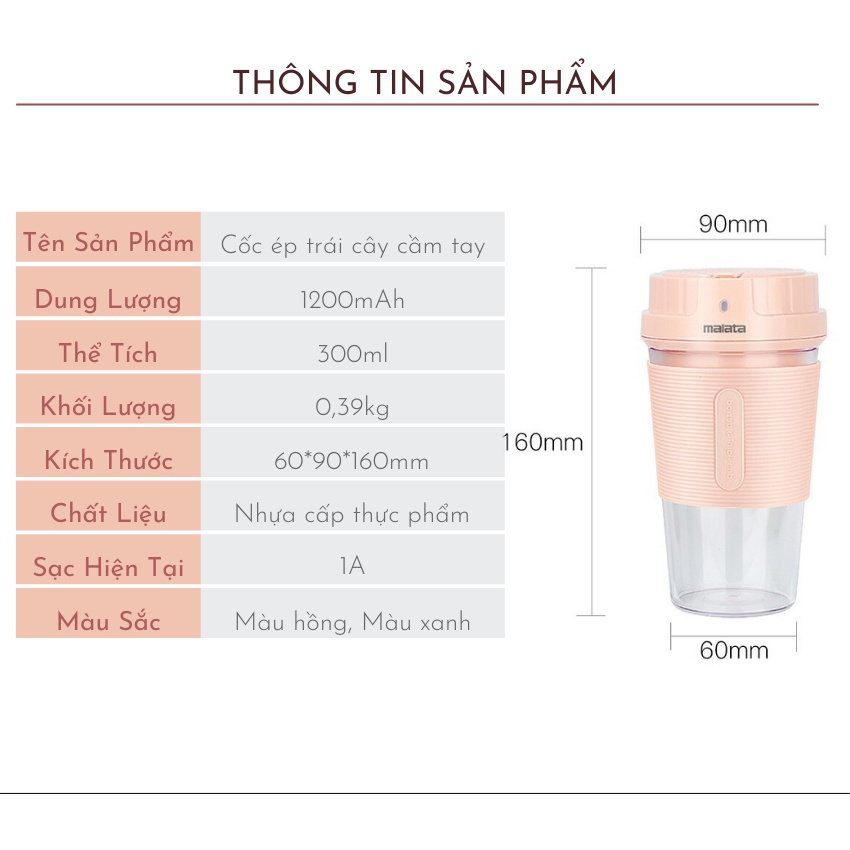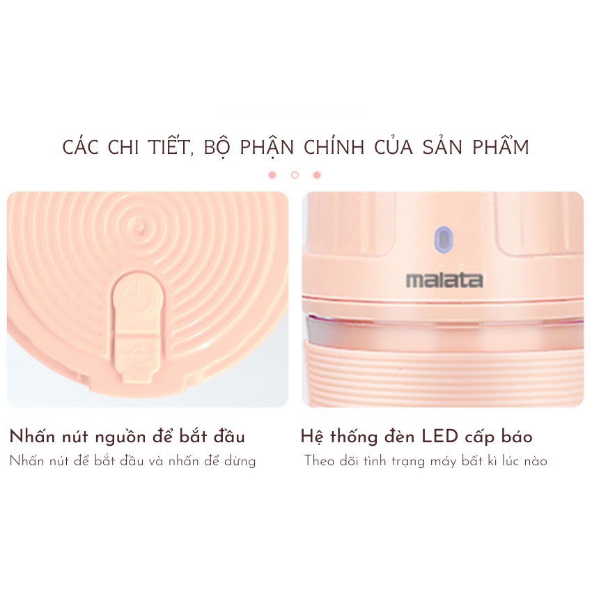 Giới thiệu Máy Xay Sinh Tố Mini Cầm Tay Malata 220ML Lưỡi Dao Thép 4 Cánh Không Gỉ, Đa Năng Tiện Dụng, Có Sạc Pin USB Bảo Hành 12 T