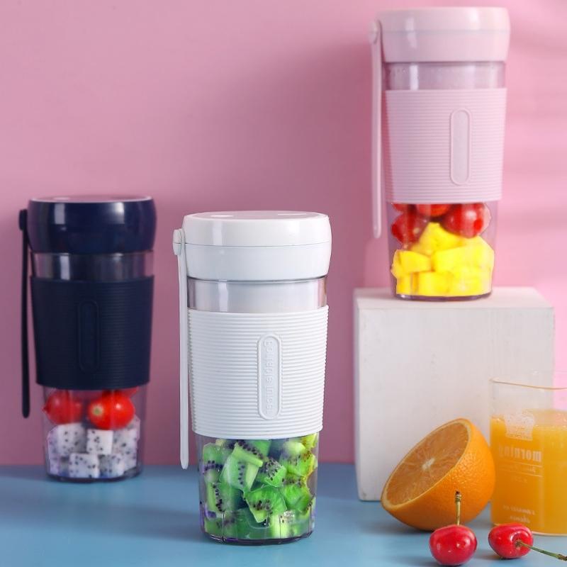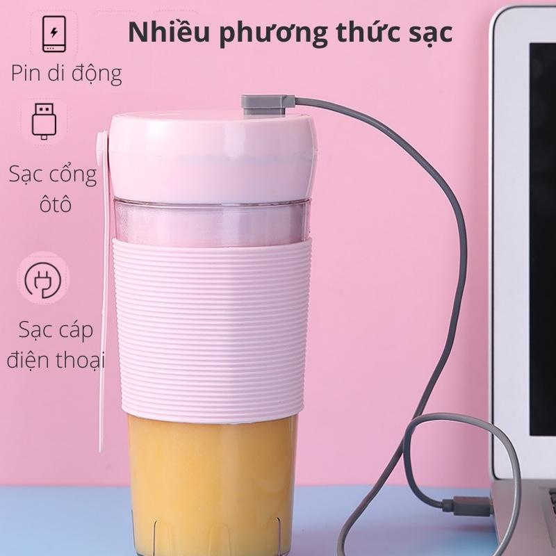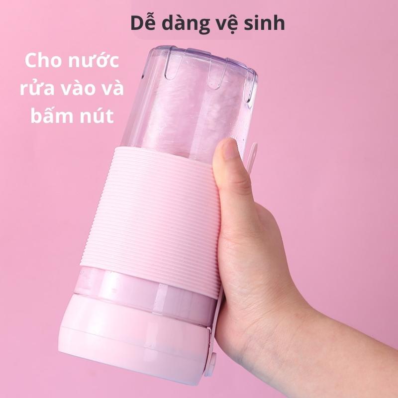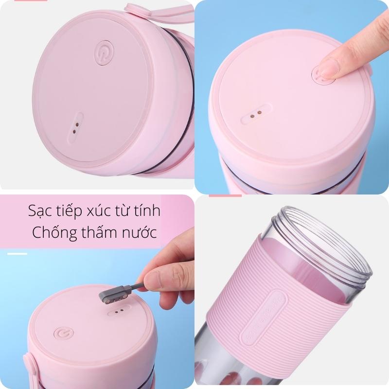 Máy Xay Sinh Tố Mini Cầm Tay 420ml 4 Lưỡi Dao Thép Không Gỉ Có Pin Sạc USB Bugu QH-09