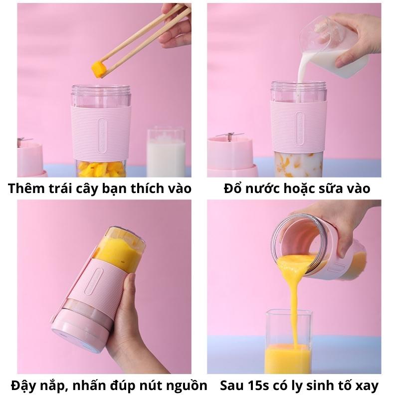 Giới thiệu Máy Xay Sinh Tố Mini Cầm Tay 420ml 4 Lưỡi Dao Thép Không Gỉ Có Pin Sạc USB Bugu QH-09