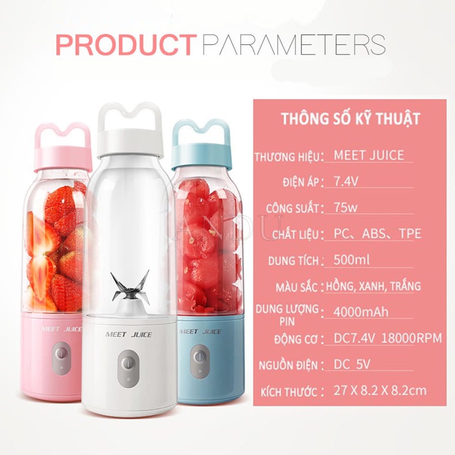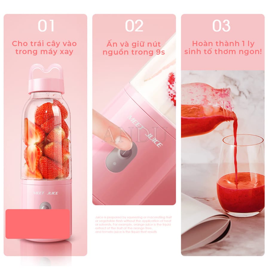 Máy xay sinh tố mini cầm tay Meet Juice 500ml Xay Cực Nhanh Cao Cấp, An Toàn