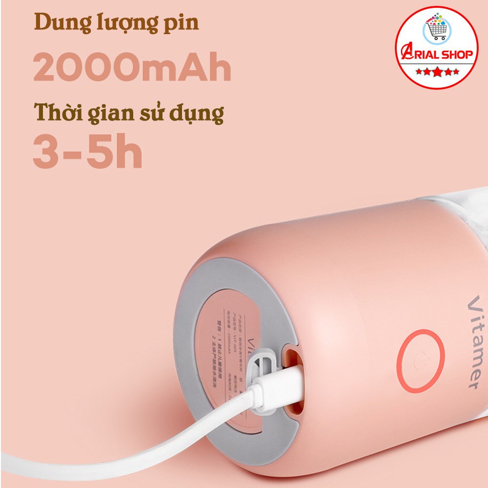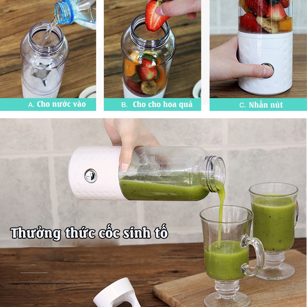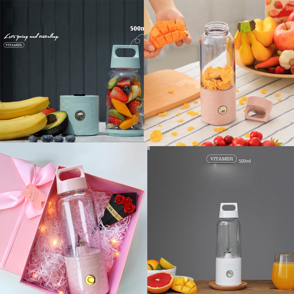 Máy Xay Sinh Tố Mini Cầm Tay VITAMER Dung Tích 500ml - Máy Sinh Tố Mini Sạc Điện Có Thể Xay Đá Siêu Tiện Dụng