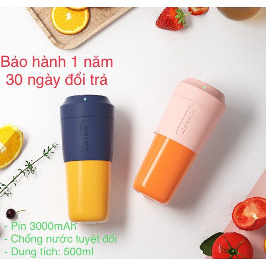 [Mã 254ELSALE giảm 7% đơn 300K] Máy xay sinh tố mini cầm tay, dung lượng pin lớn 3000 mAh
