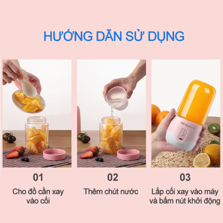 Cách sử dụng sản phẩm Máy Xay Sinh Tố Cầm Tay Mini Sạc Pin Tích Điện: