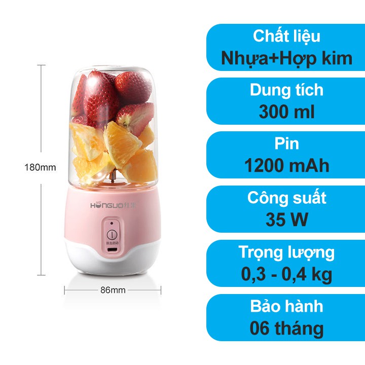 - Sạc 1 lần trong 3 tiếng ,có thể ép 8-12 cốc sinh tố.
