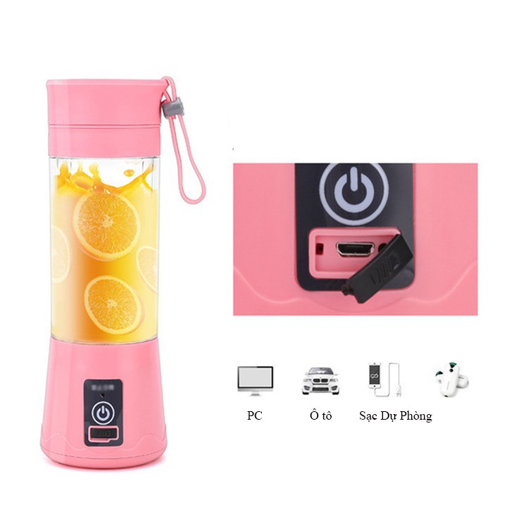 Máy xay sinh tố du lịch mini sạc cổng usb là một sự lựa chọn tuyệt vời cho bạn và gia đình. Máy được thiết kế nhỏ, gọn sạc pin bằng USB rất tiện lợi, dù ở bất cứ nơi đâu bạn cũng vẫn có thể tự làm cho mình những ly sinh tố trái cây tươi ngon, xay xong bạn có thể đậy nắp bình lại và xách theo.