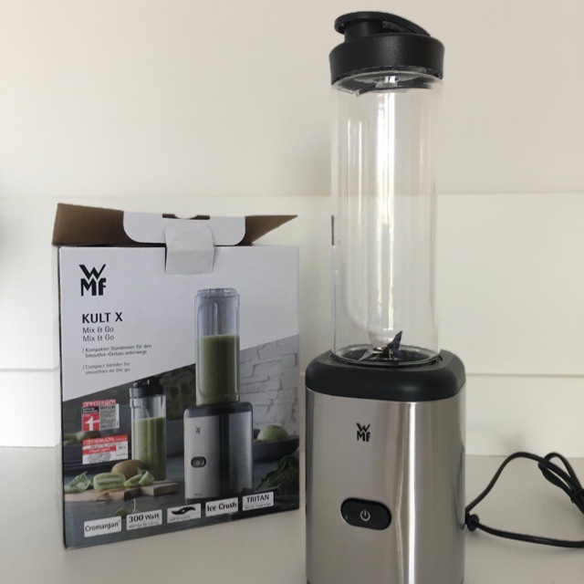- Máy xay sinh tố mini WMF Kult X Mix & Go được thiết kế gọn nhẹ, cực kì tiết kiệm không gian trong nhà bếp và thích nghi với lối sống đô thị hiện đại. Bình xay sinh tố có thể tháo rời lắp chặt và mang theo đi làm, đi học hoặc khi đi chơi thể thao - Bất cứ nơi đâu bạn cũng có thể thưởng thức món đồ uống sinh tố yêu thích của mình.