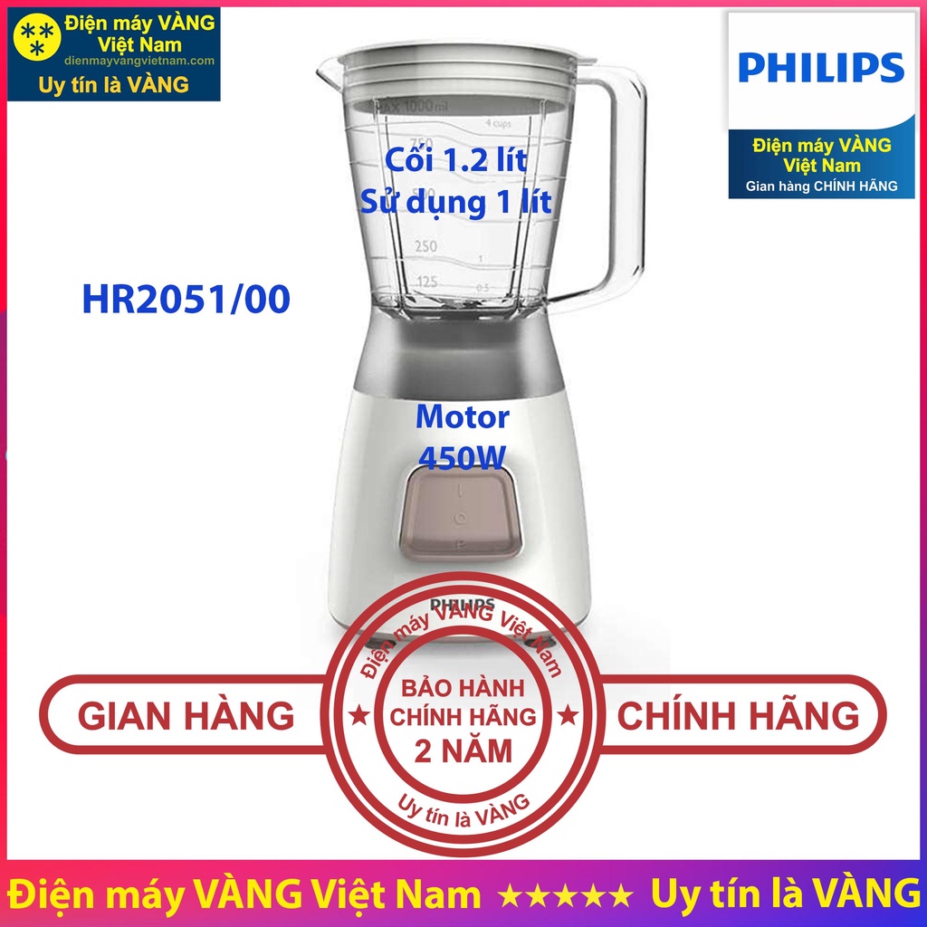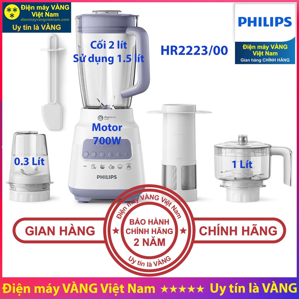 Máy xay sinh tố Philips HR2051 HR2056 HR2221 HR2222 HR2223 - Hàng chính hãng (Bảo hành 2 năm trên toàn quốc)