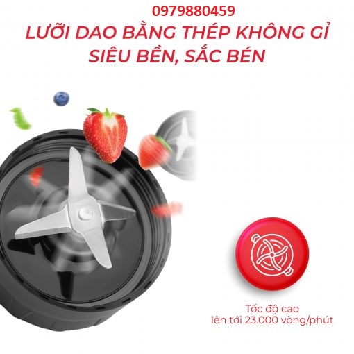 Máy xay hoạt động với công suất 300w vô cùng mạnh mẽ kết hợp với lưỡi dao sắc bén sẽ nhanh chóng xay nhuyễn hoa quả, thực phẩm giúp tiết kiệm thời gian.