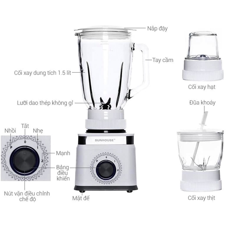 Máy xay sinh tố sunhouse 3 cối thủy tinh - Bảo hành 12 tháng
