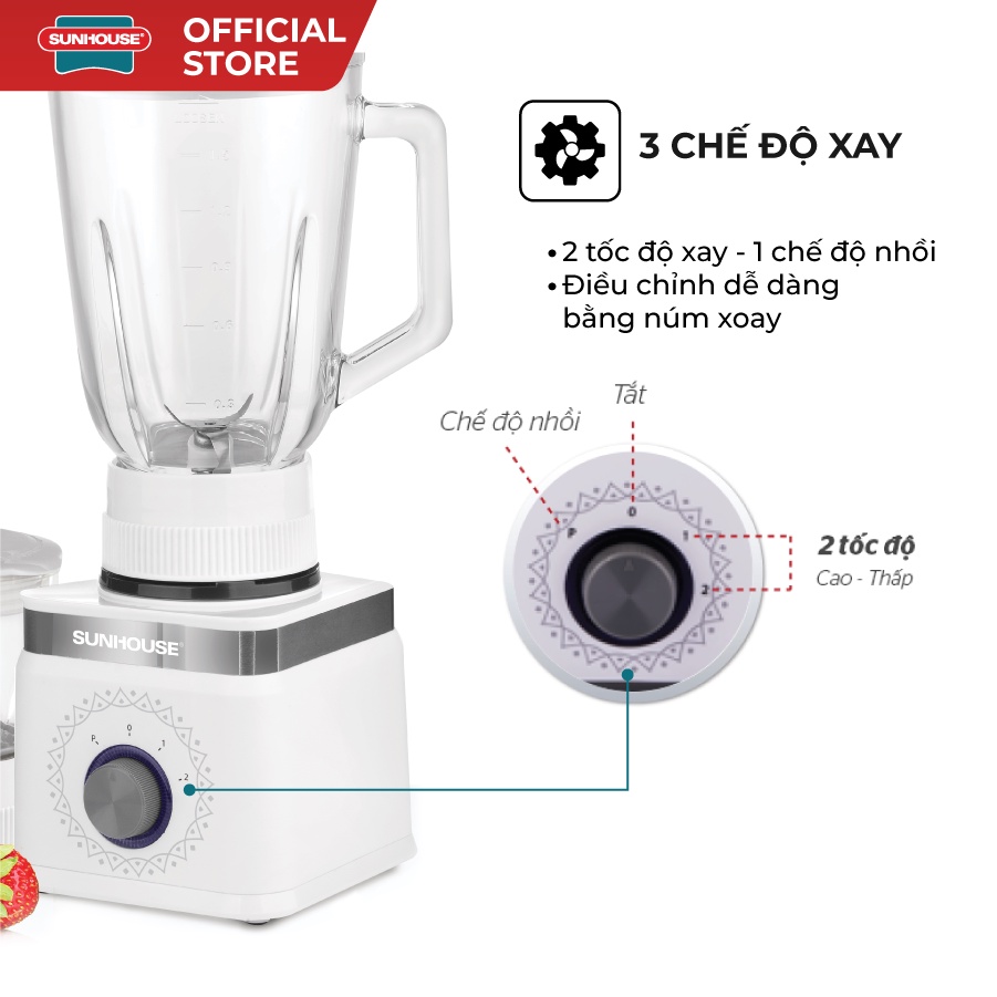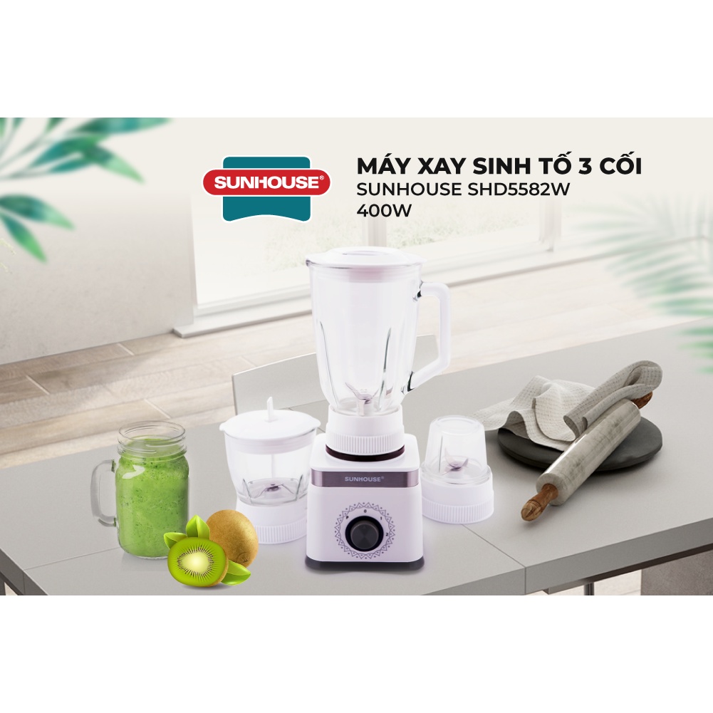 Thiết Bị Điện Gia Dụng > Đồ gia dụng nhà bếp > Máy ép, Xay sinh tố & Máy làm sữa đậu nành || Máy xay sinh tố SUNHOUSE 3 cối màu trắng SHD5582WCòn hàng