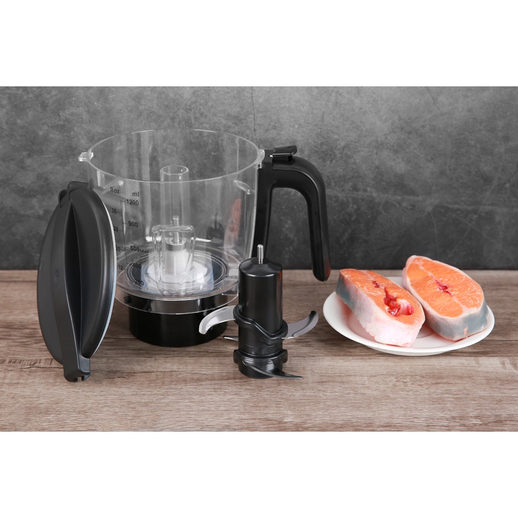 ● Máy xay sinh tố có cối xay thịt 1.2 lít đi kèm lưỡi dao, nắp đậy riêng đảm bảo thịt, cá, hải sản được xay nhuyễn nhanh, không rơi vãi ra ngoài.