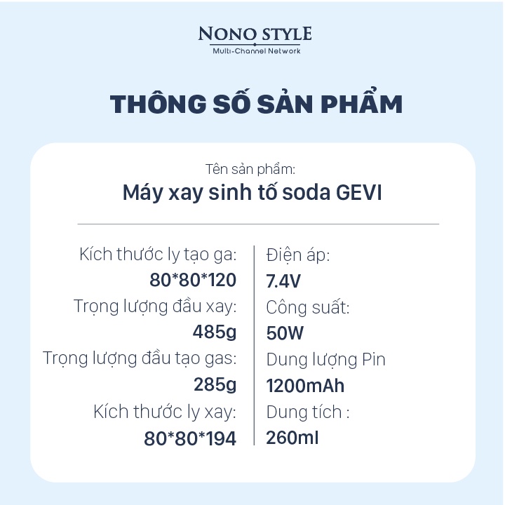 Tên sản phẩm: LY XAY SINH TỐ TẠO GAS GEVI