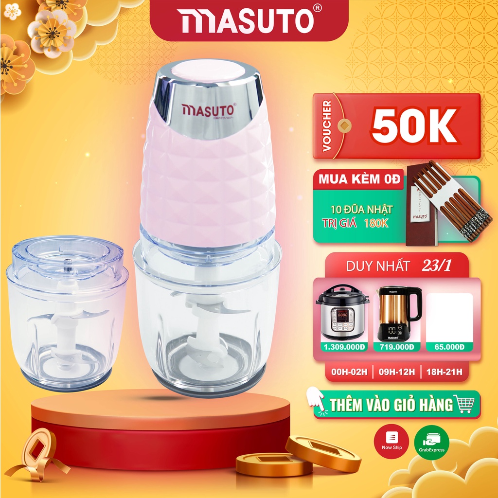 Thiết Bị Điện Gia Dụng > Đồ gia dụng nhà bếp > Máy chế biến thực phẩm & Xay thịt || [Mã ELMALL10 giảm 10% đơn 500K] Máy xay Thịt đa năng Masuto phiên bản 2 cối xay Thịt, Tỏi Ớt, Trái câyCòn hàng