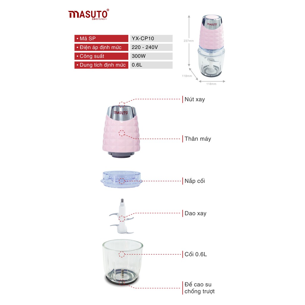 - Tên sản phẩm: Máy Xay Thực Phẩm Đa Năng Masuto