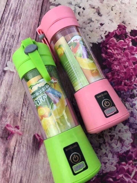 🌻Máy xay sinh tố mini 2 in1 Sạc điện về 2 màu hồng và xanh lá