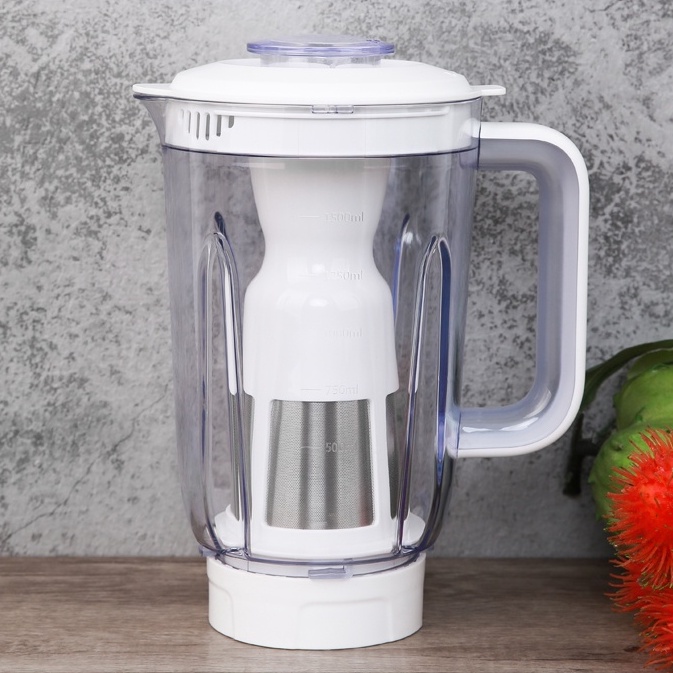 Cối lớn có dung tích 1.5 lít xay được lượng lớn thực phẩm cùng lúc. Đặc biệt đi kèm cối có bộ lọc bã inox 304 an toàn, cho khả năng tách bã thực phẩm và nước ép dễ dàng, mang đến cho bạn những cốc sinh tố, nước ép sánh mịn, thơm ngon nhanh chóng.