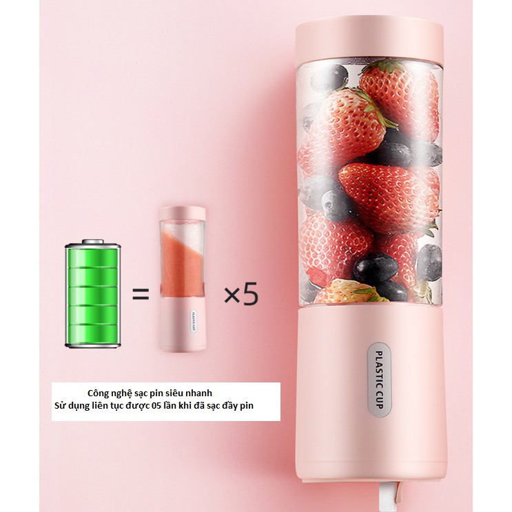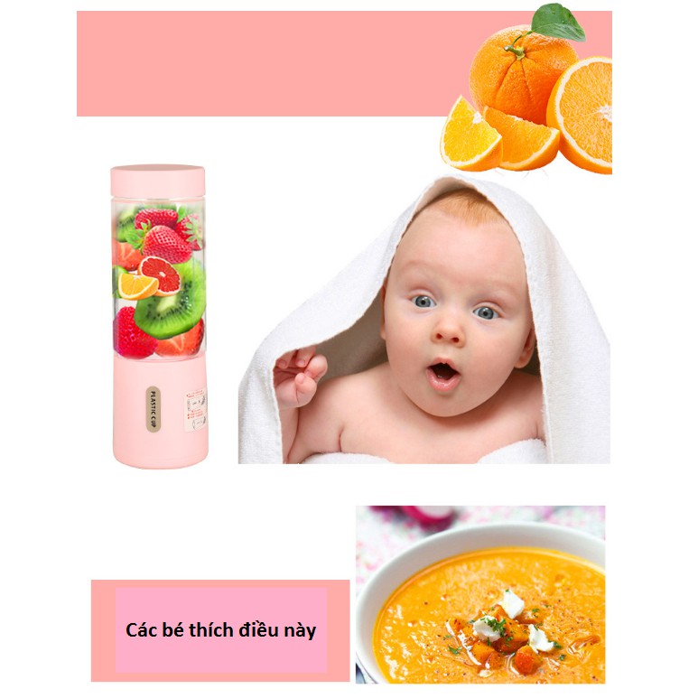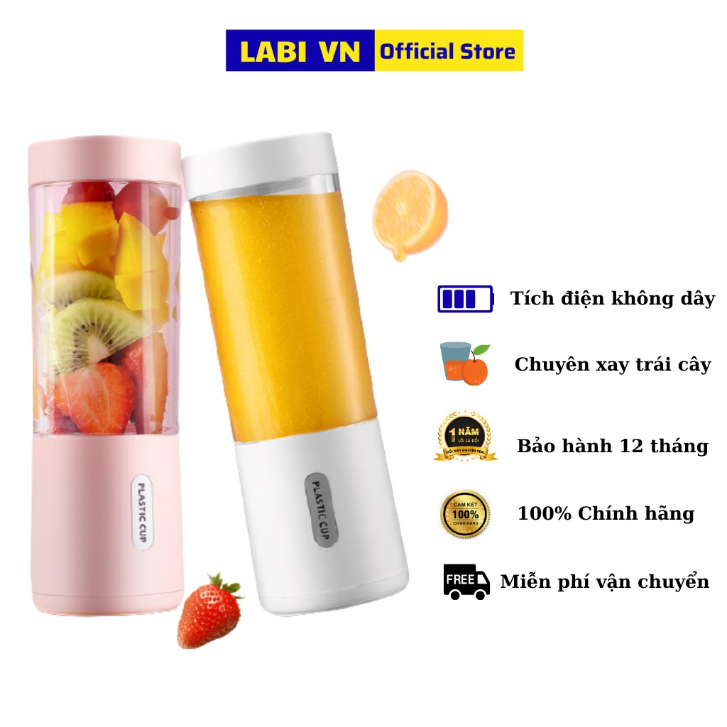 Máy xay sinh tố trái cây mini cầm tay tích điện không dây cắm công suất 30W, 350ml LABI VN LB064