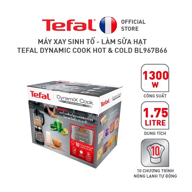 Thiết Bị Điện Gia Dụng > Đồ gia dụng nhà bếp > Máy ép, Xay sinh tố & Máy làm sữa đậu nành || [Mã 273ELHA100K0 hoàn 7% đơn 500K] Máy xay sinh tố và làm sữa hạt 1300W Tefal BL967B66Còn hàng