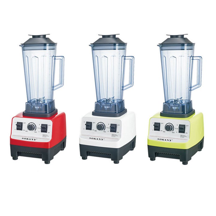 Máy xay sinh tố SOKANY phục vụ cho công việc xay, nghiền hoa quả, ngũ cốc… tại các quán sinh tố, quán cafe, quán kinh doanh sữa đậu nành, sữa ngô, sữa mè đen… hoặc có thể sử dụng chiếc máy này để xay bột nghệ, gạo lứt… rất đa năng. Chiếc máy xay sinh tố công suất lớn này được sản xuất với công suất lớn lên tới 4500W nên nó có thể xay, nghiền được nhiều nguyên liệu một cách nhanh chóng, ngoài các nguyên liệu trên thì nó còn có khả năng xay được đá rất hiệu quả.