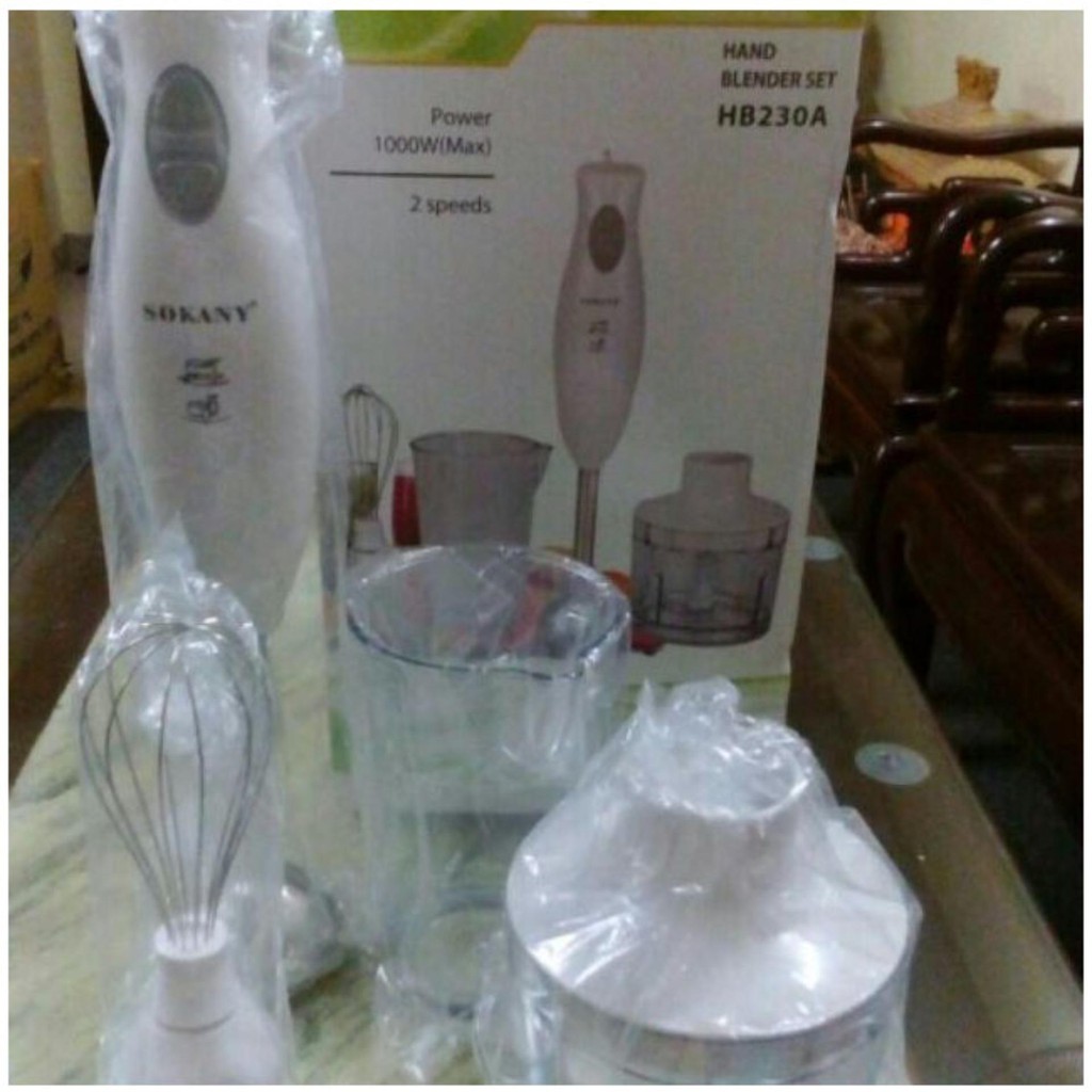 Máy xay cầm tay đa năng Sokany HB230A có hộp inox bền bỉ, thiết kế và kết cấu giá dao chắc chắn. Bàn cốc có thiết kế kiểu mới, khiến cho máy càng an toàn khi sử dụng, càng thuận tiện khi vệ sinh máy. Máy còn có cối xay thịt dung lượng lớn, vừa dùng để xay thịt, vừa dùng để xay hoa quả rất hiệu quả. Lưỡi dao hoa quả rất sắc bén, không gỉ và an toàn vệ sinh.
