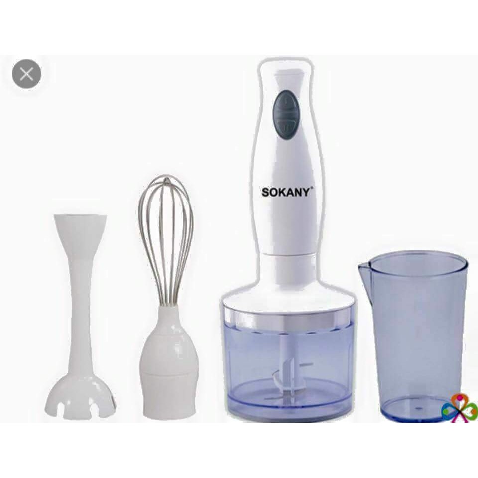- Tên sản phẩm: Máy xay cầm tay đa năng Sokany- Máy có đầu dao bằng inox rất bền, có thể xay sinh tố, soup, cháo và các thức ăn khác...