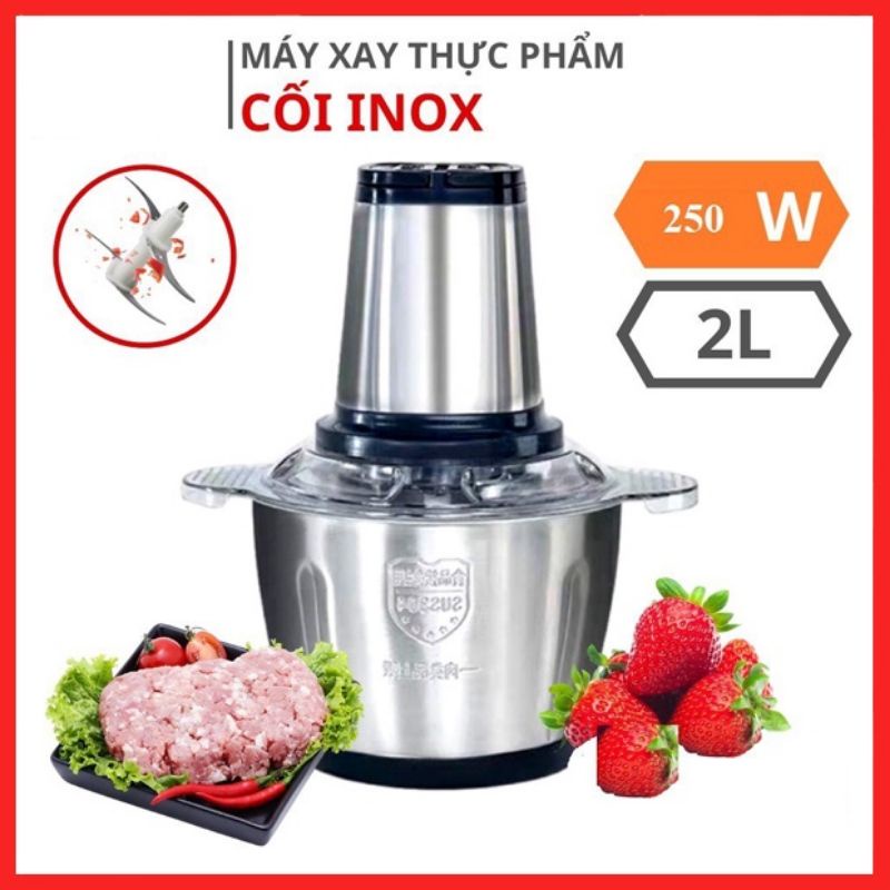 Máy Xay Thịt Cối Inox Dung Tích 2L - Cối Xay Thịt 4 Lưỡi Đa NăngCông suất 250w xay thịt, xay tỏi ới, xay rau củ quả, BẢO HÀNH 6 tháng