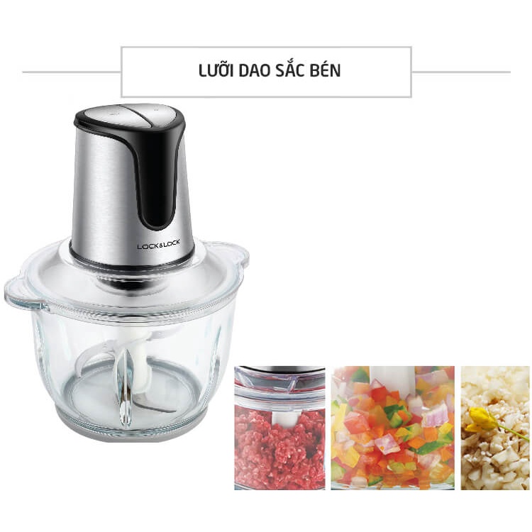 Sản phẩm có cối xay được gia công từ thủy tinh cao cấp, độ bền cao, chịu lực tốt, không chứa chất độc hại, an toàn khi sử dụng, bảo vệ sức khỏe người dùng. Với dung tích 2L, sức chứa tốt, lòng cối sâu, dùng để xay thịt và rau củ, đáp ứng tốt yêu cầu của người dùng. Đặc biệt, phần thân trên của máy xay thịt Lock&Lock được gia công từ thép không gỉ, hạn chế bám bẩn, dễ dàng lau chùi sau khi sử dụng.