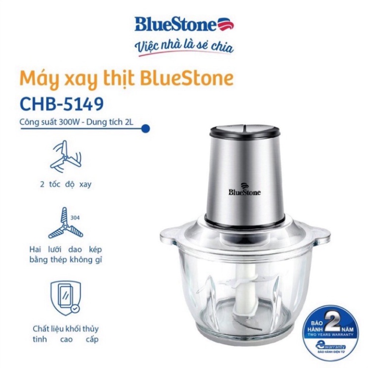 Thiết Bị Điện Gia Dụng > Đồ gia dụng nhà bếp > Máy chế biến thực phẩm & Xay thịt || Máy Xay Thịt 2 Lưỡi Dao Kép BlueStone CHB-5149 (2L) - Hàng chính hãng - Bảo hành 24 thángCòn hàng