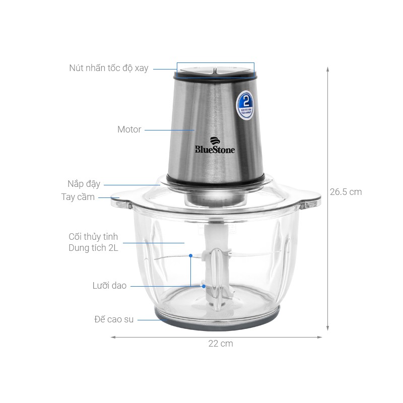 Giới thiệu [Mã ELHA22 giảm 5% đơn 300K] Máy Xay Thịt 2 Lưỡi Dao Kép BlueStone CHB-5149 (2L) Hàng chính hãng