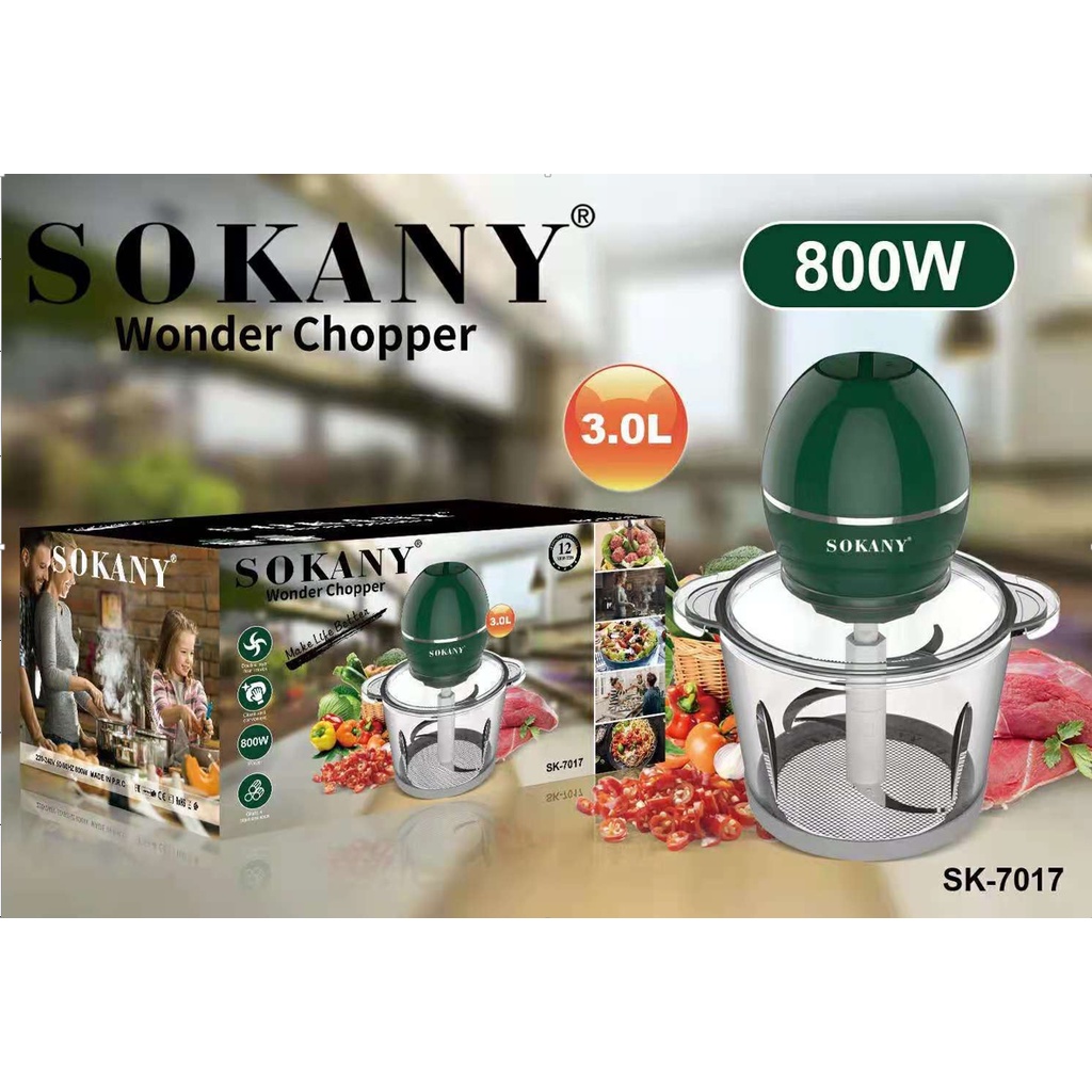 Máy xay thịt 3.0L 800w Sokany 7017- Dung tích: 3L- Công suất: 800W- Điện áp: 220V-50Hz- Chất liệu cối: INOX- Lưỡi dao: Thép không rỉ- Sử dụng: Xay thịt, cá, rau củ…
