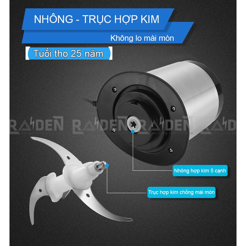 Giới thiệu [Mã ELMALL10 giảm 10% đơn 500K] Máy xay thịt 350W Raiden RD-202 cối inox 304 dung tích 1.8L