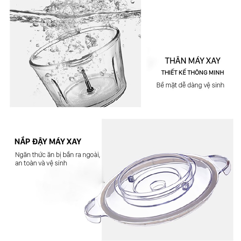 ✔ Chất liệu thép không rỉ có độ bền cao và không độc hại với sức khỏe người dùng, không bị bám mùi thực phẩm. Lưỡi xay kép 2 tầng giúp xay nhuyễn mịn các loại thực phẩm, cối xay dung tích 2L, dễ dàng tháo lắp và vệ sinh sau khi sử dụng.