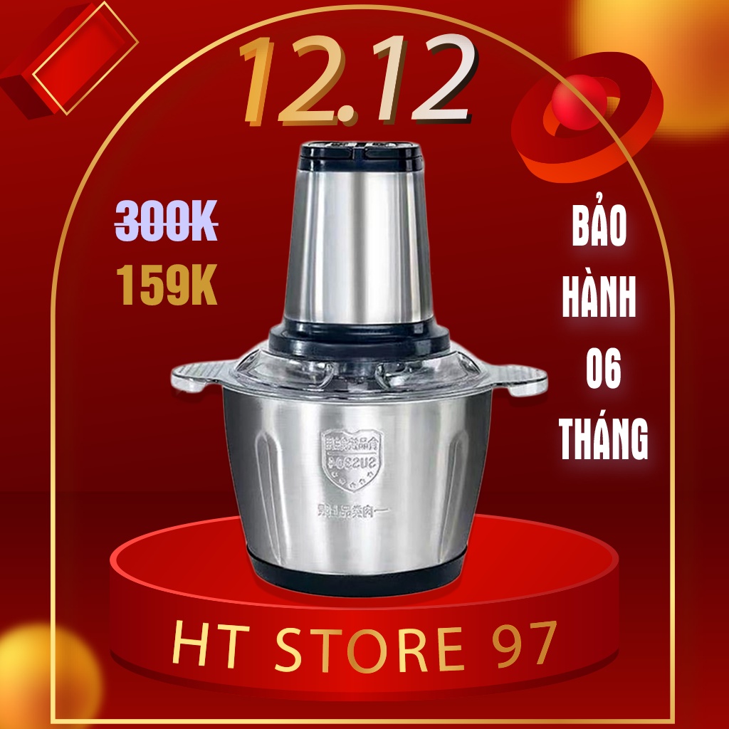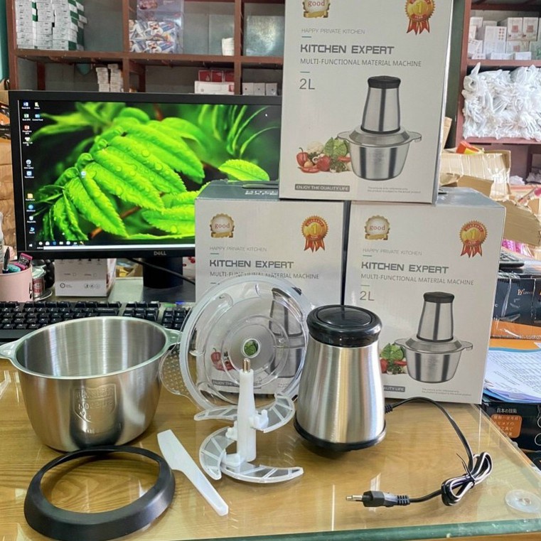 Thiết Bị Điện Gia Dụng > Đồ gia dụng nhà bếp > Máy chế biến thực phẩm & Xay thịt || Máy Xay Thịt 4 Lưỡi – Cối Inox - Dung Tích 2 Lít - Công Suất 300W - Máy xay thịt, xay tỏi ới, xay rau củ quảCòn hàng