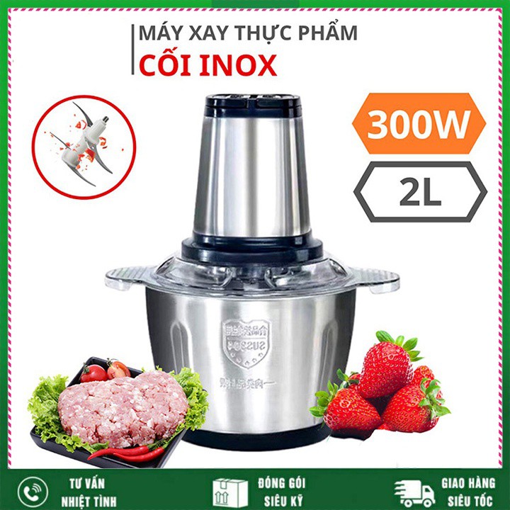 Thiết Bị Điện Gia Dụng > Đồ gia dụng nhà bếp > Máy chế biến thực phẩm & Xay thịt || Máy xay thịt bằng tay 4 lưỡi, cối Inox 304, công suất 300w dung tích 2 lítCòn hàng