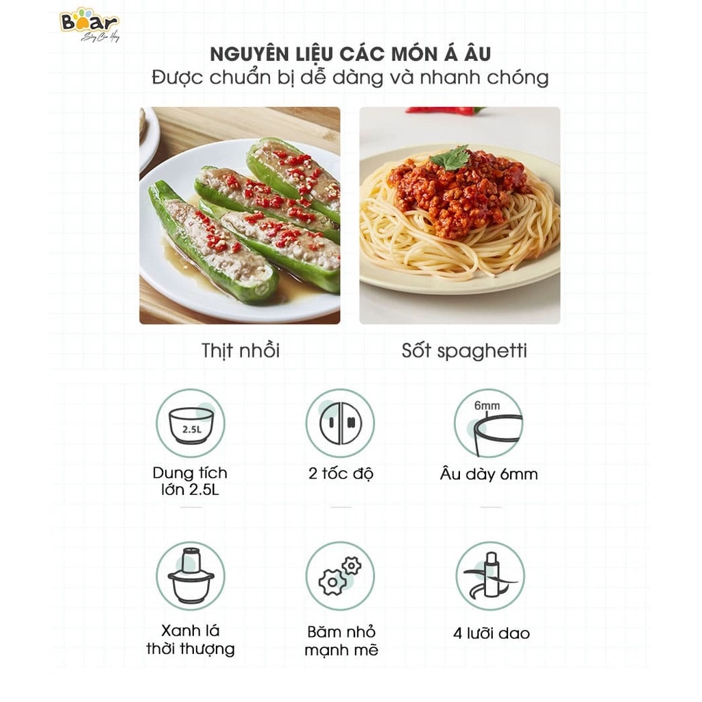 Thiết Bị Điện Gia Dụng > Đồ gia dụng nhà bếp > Máy chế biến thực phẩm & Xay thịt || Máy xay thịt Bear 2.5L QSJ-C04R8S, xay thực phẩm đa năng 4 lưỡi dao cực nhuyễn - Bản quốc tế chính hãngCòn hàng