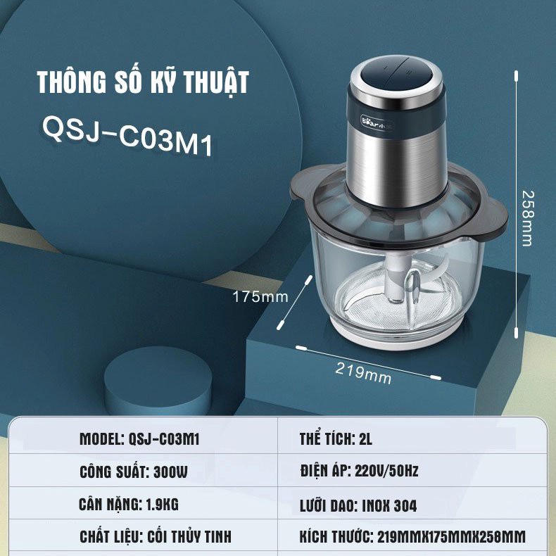 Máy xay thịt Bear QSJ-C03M1, máy xay thực phẩm đa năng, công suất 300W - Bảo hành chính hãng 3 tháng