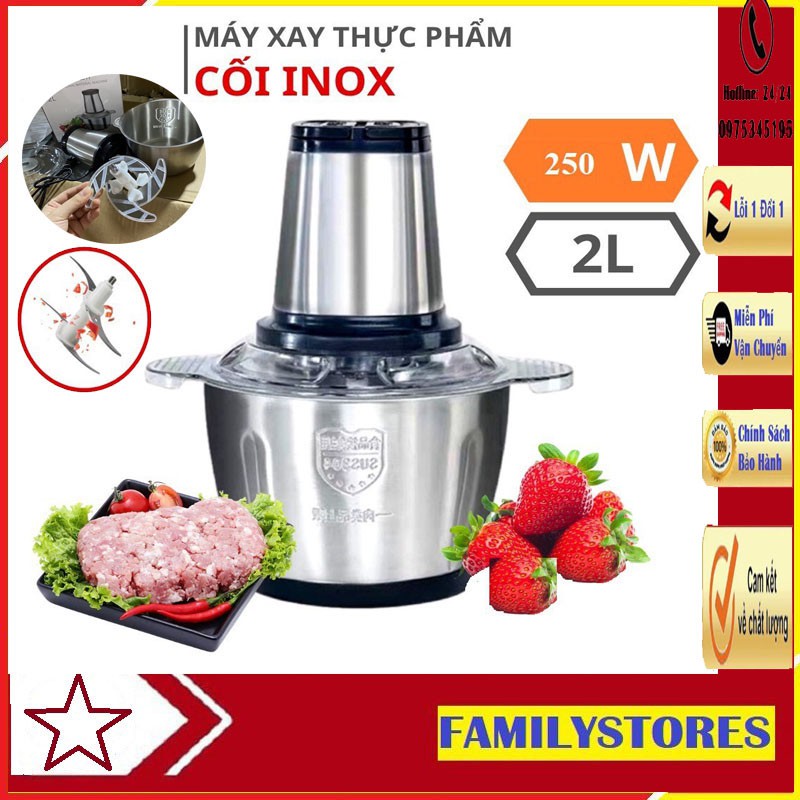 Máy xay thịt BH 6 Tháng Máy xay thực phẩm đa năng gia đình công suất lớn 250w cối inox 304 cao cấp bền đẹp