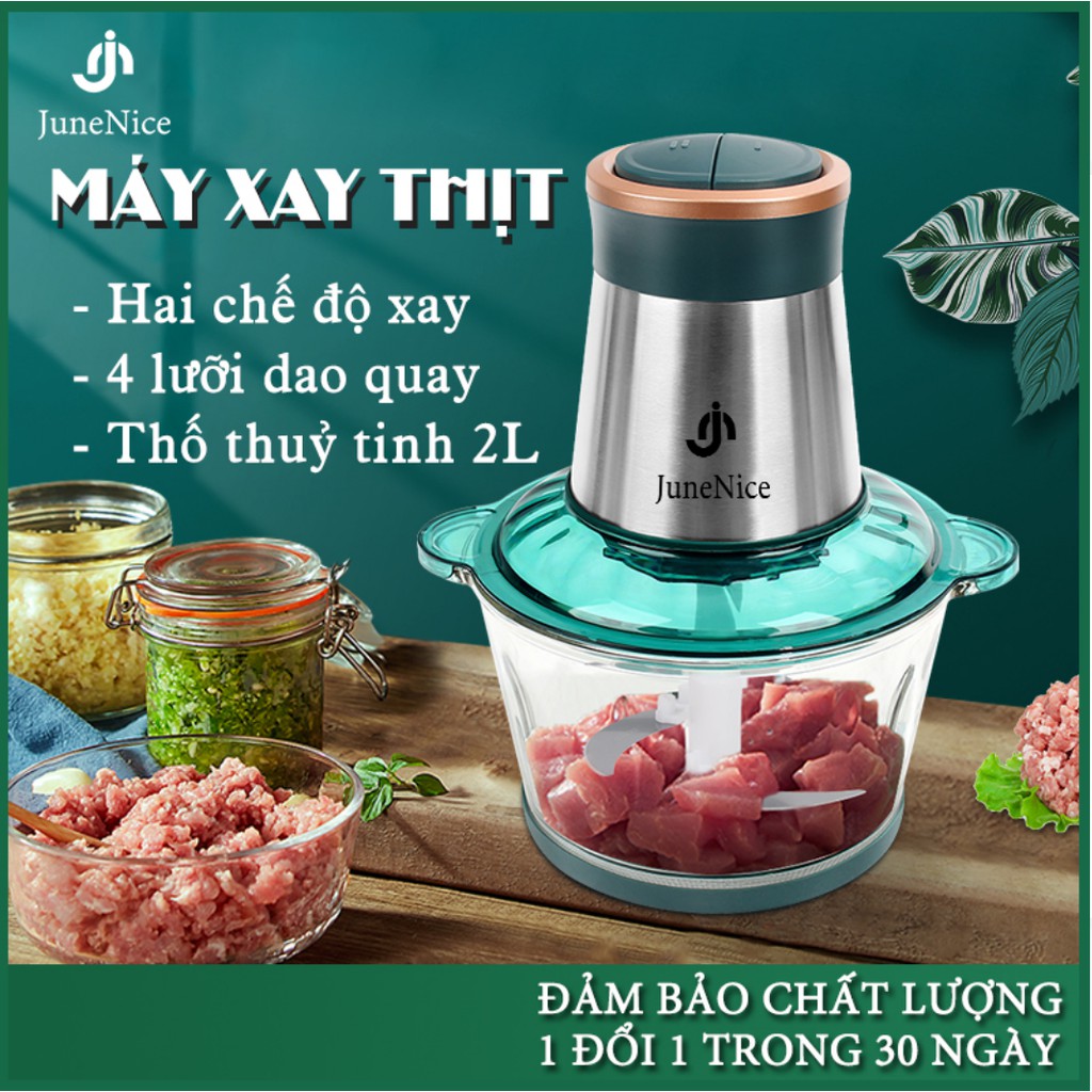 Máy xay thịt bình thuỷ tinh 2 lít JN June Nice 2l tương đương 1kg thịt, 2 chế độ nhanh chậm, chỉ mất 10 giây có ngay