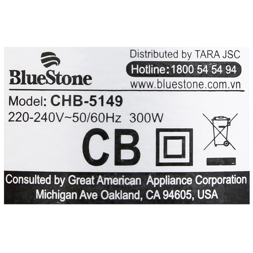 Bluestone là thương hiệu đến từ Singapore thành lập năm 1995, theo tiêu chuẩn Châu u và được tư vấn thiết kế bởi tập đoàn GAAC USA. Bluestone nổi tiếng với các nhóm sản phẩm sử dụng trong căn bếp như nồi áp suất, máy làm sữa đậu nành, máy xay sinh tố,...