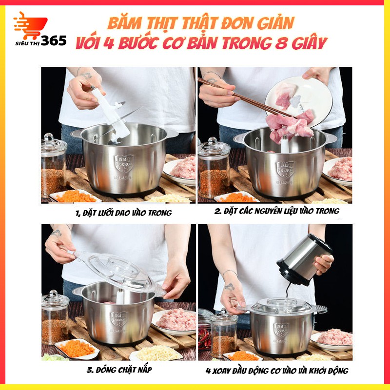 Máy xay thịt loại tốt 2 lít inox 304 | Máy xay thịt đa năng, thực phẩm, trái cây, hoa quả cao cấp