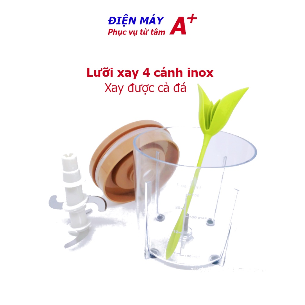🍀 Lưỡi dao 4 cánh cải tiến bằng inox 304, bén hơn, xay nhuyễn hơn, xay được cả đá.