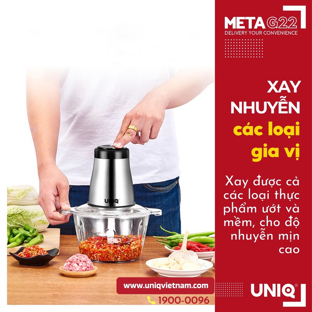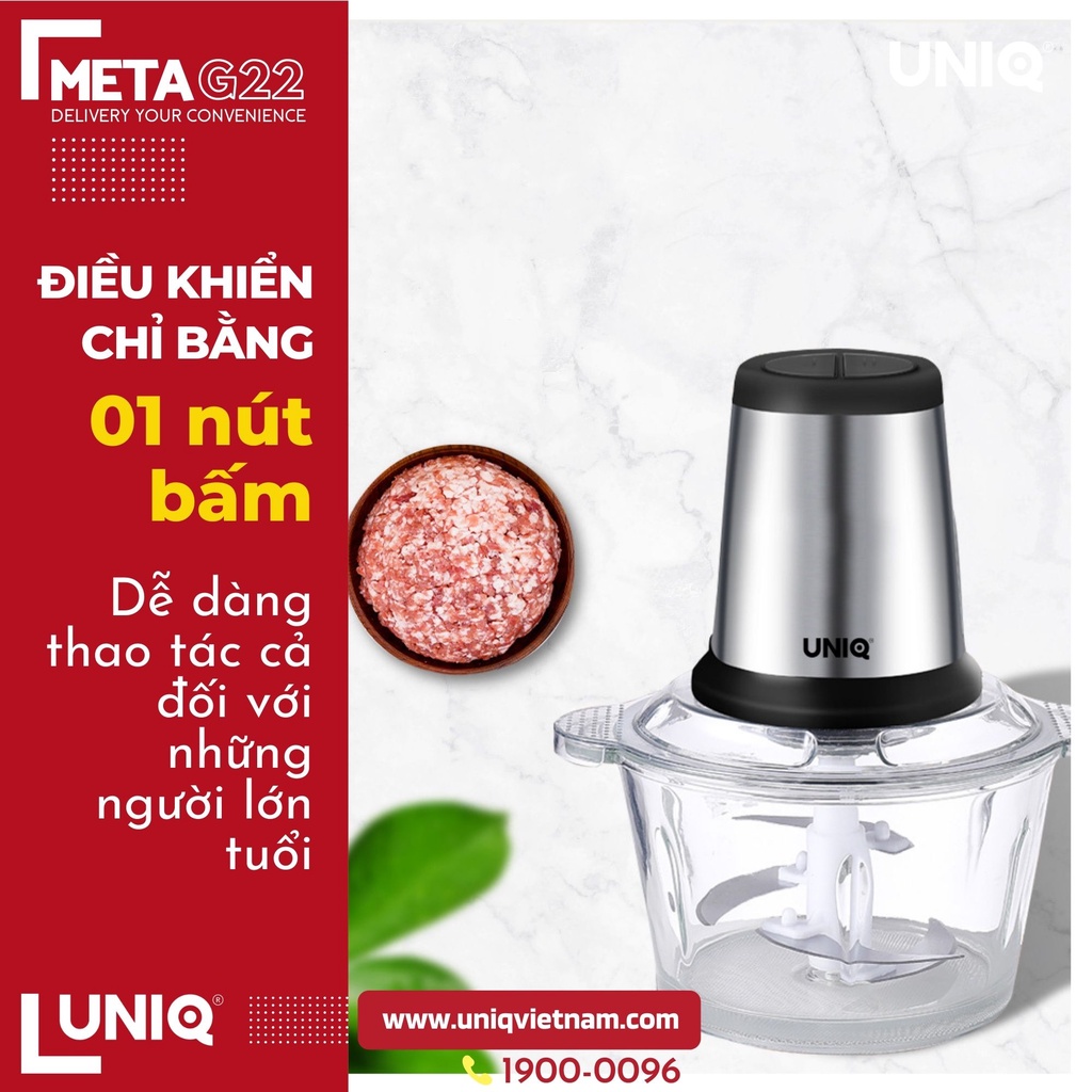 Thiết Bị Điện Gia Dụng > Đồ gia dụng nhà bếp > Máy chế biến thực phẩm & Xay thịt || Máy xay thịt cá, rau củ UNIQ Meta G22 2L với lưỡi dao thép không gỉ cối thủy tinh cao cấp phù hợp với gia đìnhCòn hàng