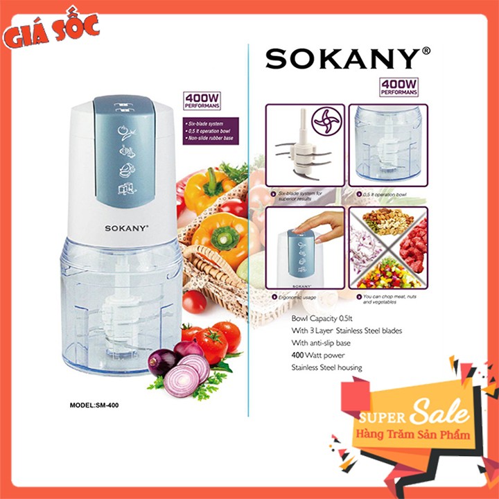 - Máy xay thịt SOKANY sở hữu kiểu dáng nhỏ gọn. Đem lại sự tiện lợi và giúp tiết kiệm thời gian cũng như công sức cho người nội trợ. Sản phẩm chuyên dùng xay thịt tiện dụng, ngoài ra còn có thể xay hoa quả, các loại hạt và các thực phẩm khác.