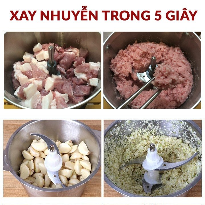 Thiết Bị Điện Gia Dụng > Đồ gia dụng nhà bếp > Máy chế biến thực phẩm & Xay thịt || Máy Xay Thịt Cầm Tay Đa Năng Gia Đình Cối Inox 4 Lưỡi Đa năng, Công suất 250W dung tịch 2LCòn hàng